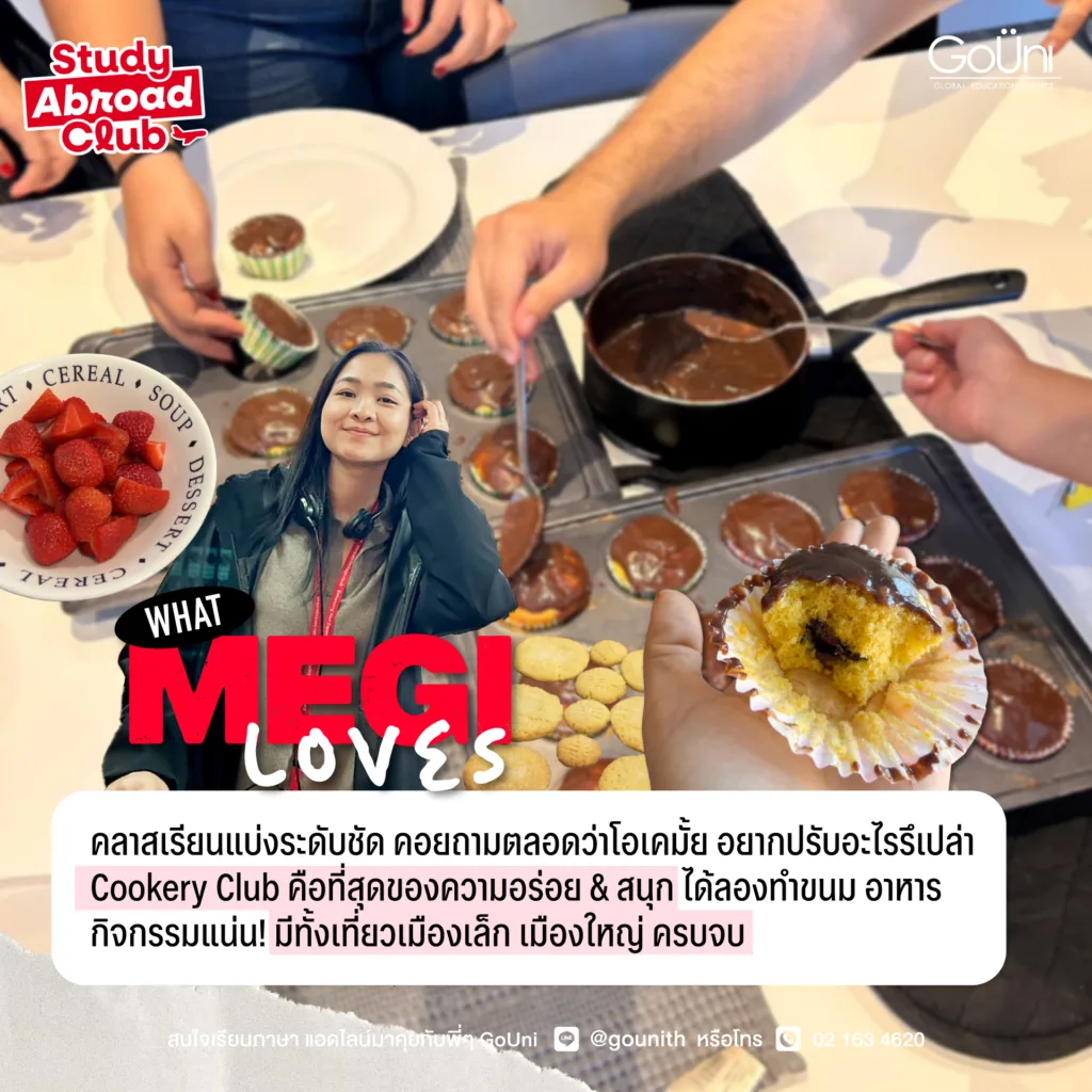 : คอร์สเรียนดีมากๆ ค่ะ มีการสอบแยกระดับ ติดตามผลทุกสัปดาห์ ทุกๆ สี่สัปดาห์จะมีการเรียกไปถามว่าอยากปรับอะไรตรงไหนไหม ส่วนกิจกรรมจะมีตั้งแต่ในเมืองเล็กๆ จนไปเที่ยวเมืองอื่นๆ แต่ที่ชอบที่สุดจะเป็น ‘Cookery Club‘ ค่ะ สนุกแถมขนม/อาหารที่ทำ อร่อยมากๆ