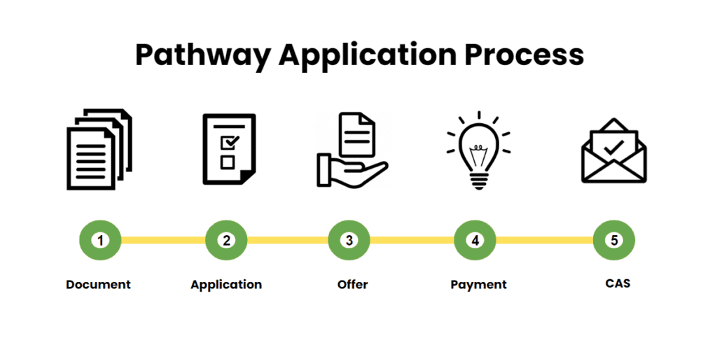 นักเรียนต้องกรอกแบบฟอร์มขอวีซ่าผ่านระบบออนไลน์ที่เว็บไซต์ของ UK Visas and Immigration (UKVI) ซึ่งเป็นหน่วยงานที่ดูแลการยื่นขอวีซ่าสำหรับประเทศอังกฤษ
