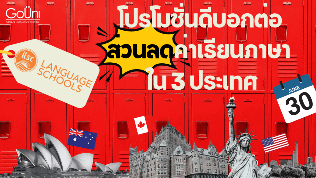 โปรโมชั่นดี ๆ รับกลางปีมาบอกต่อจากโรงเรียนภาษา iLSC Language Schools ที่ยกมาแถมกันจุก ๆ ใน 3 ประเทศให้น้อง ๆ ที่สมัครไปเรียนภาษาที่ออสเตรเลีย แคนาดา และอเมริกากัน!