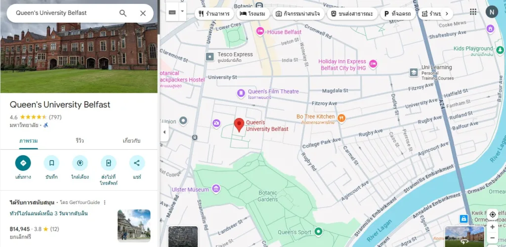 Belfast เป็นเมืองหลวงที่น่าอยู่ เดินทางสะดวกและมีค่าใช้จ่ายไม่สูง เหมาะสำหรับการเรียนของนักศึกษา